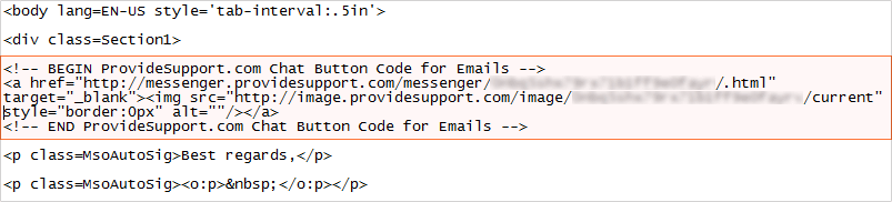 <body lang=EN-US link=blue vlink=purple style=’tab-interval:.5in’><div class=Section1> 鉴于您的初始签名 HTML 格式,请将代码添加至显示聊天按钮的位置。
