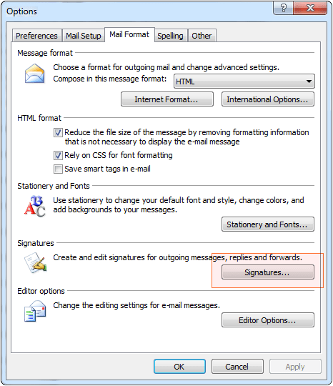 对于 Outlook 2007 及以上版本,将聊天按钮添加至 Microsoft Outlook 电子邮件签名的 说明基本相同。如果想要将聊天按钮添加至您的 HTML 电子邮件签名,请按照下列步骤执行操作。